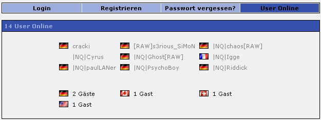 humm ich hab mal geguckt wer grad online is und festgestellt, dass wir nen gast aus der schweiz haben... is ja ok aber dass einer aus kanada da war und einer aus den USA hat mich doch seeehr verwundert schaut in anhang!