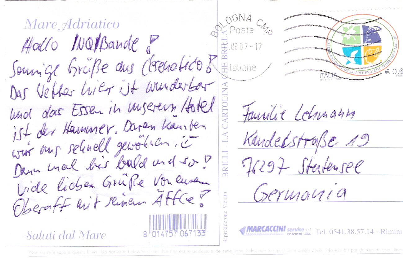 Ich hab ne Karte stellvertretend für alle erhalten ( ich war die letzte NQler Adresse bei der Fabio vorm Urlaub war *G* )