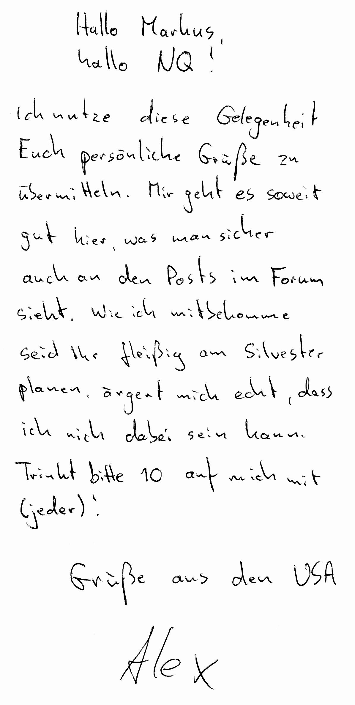 Per IRL E-Mail folgender Brief von Alex: